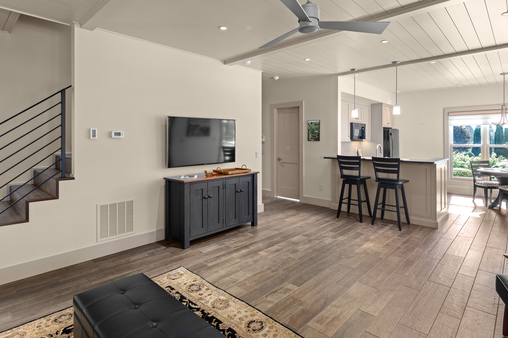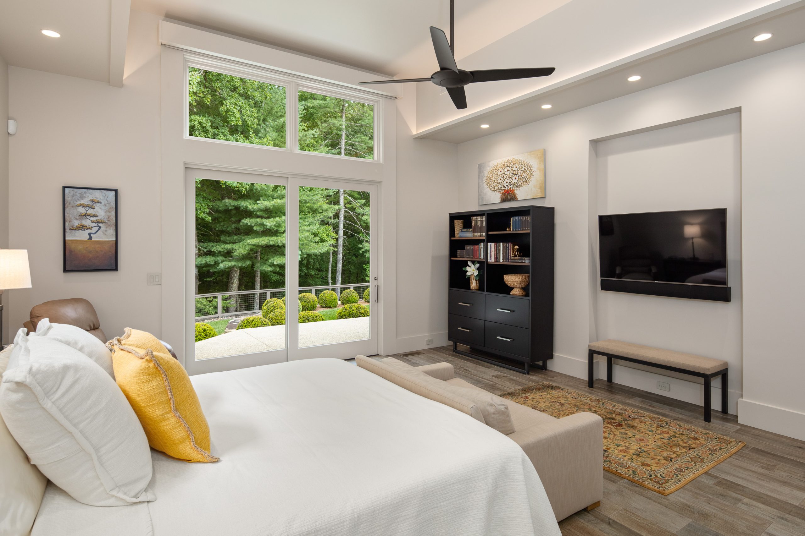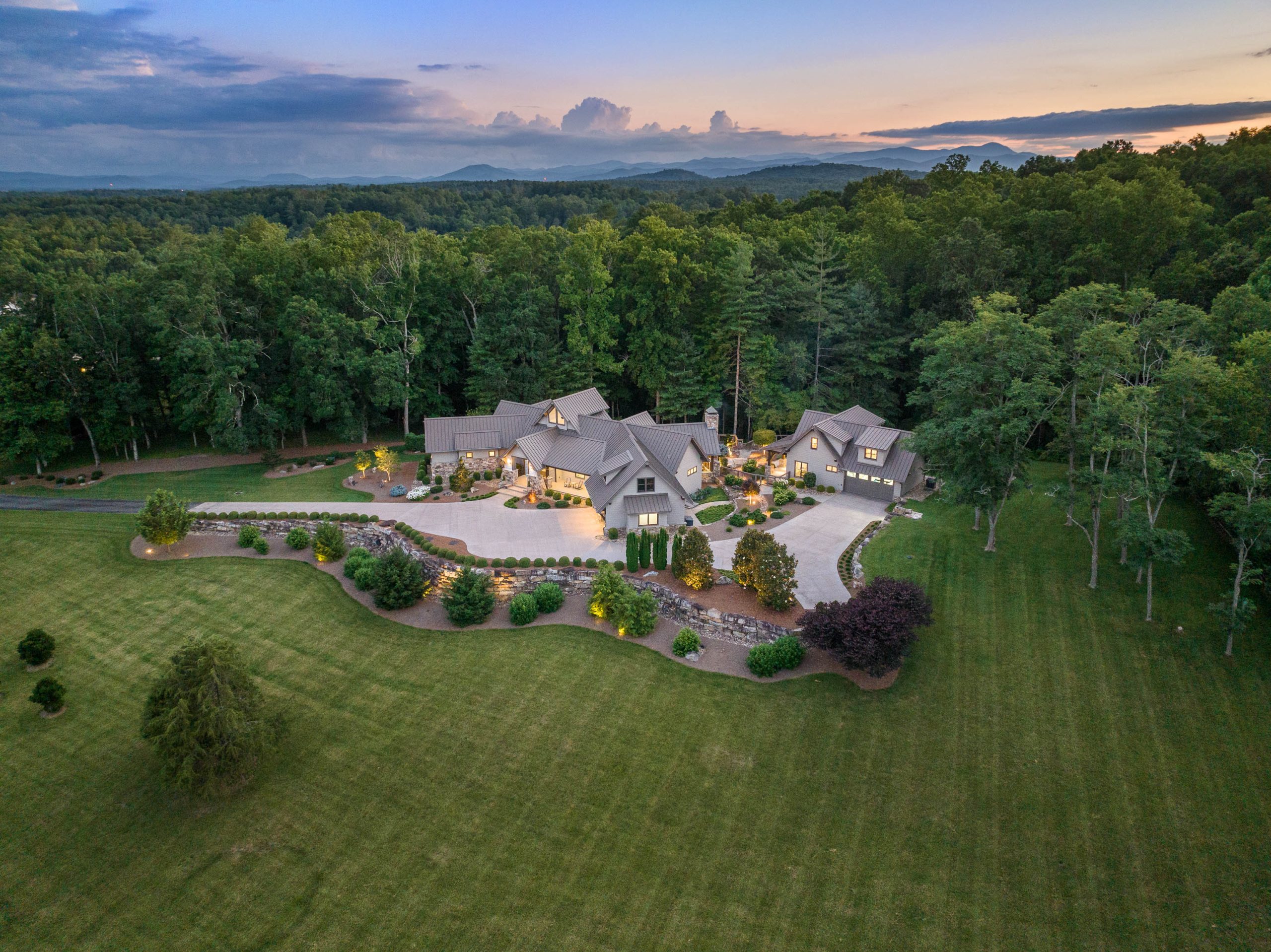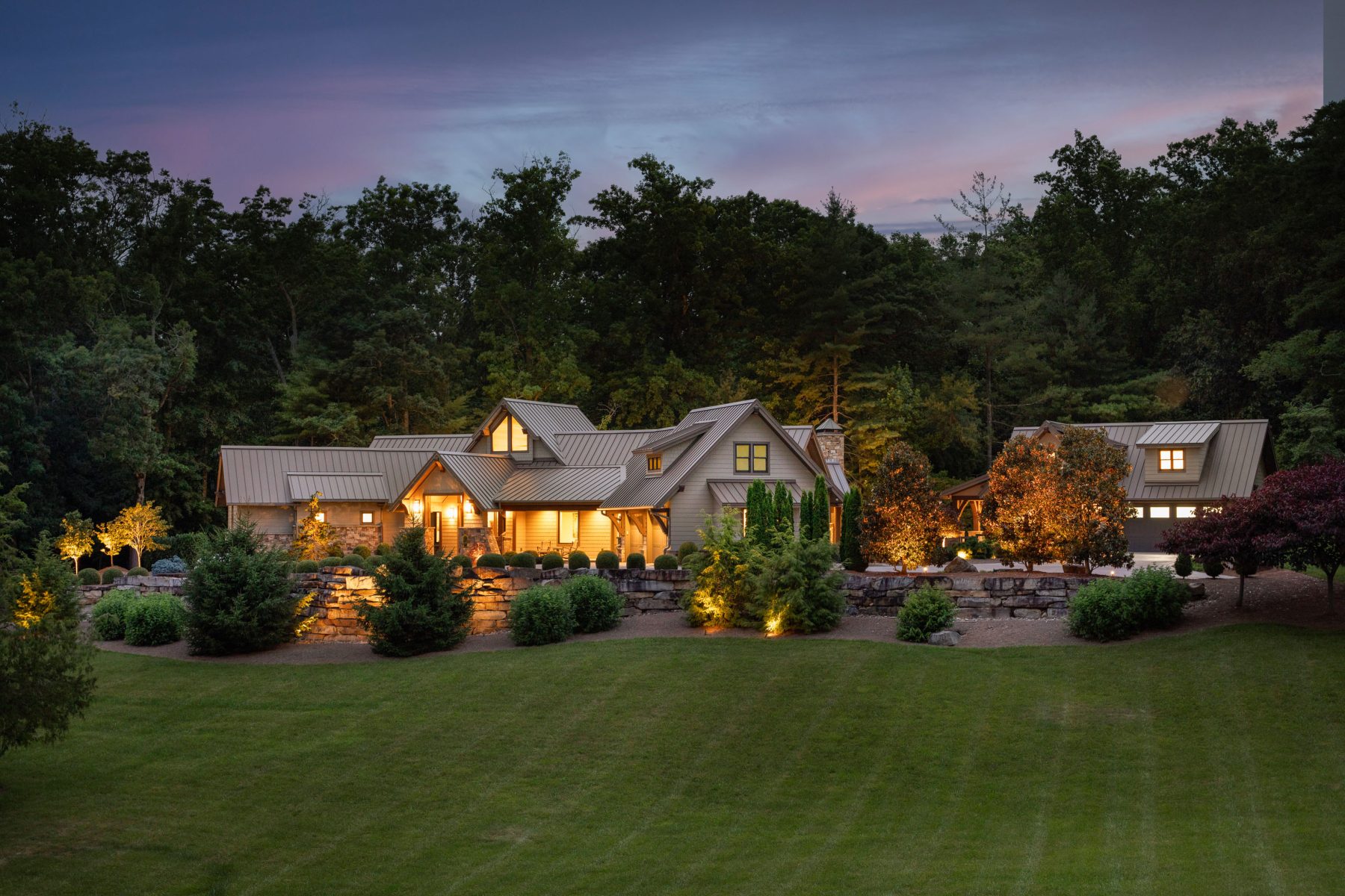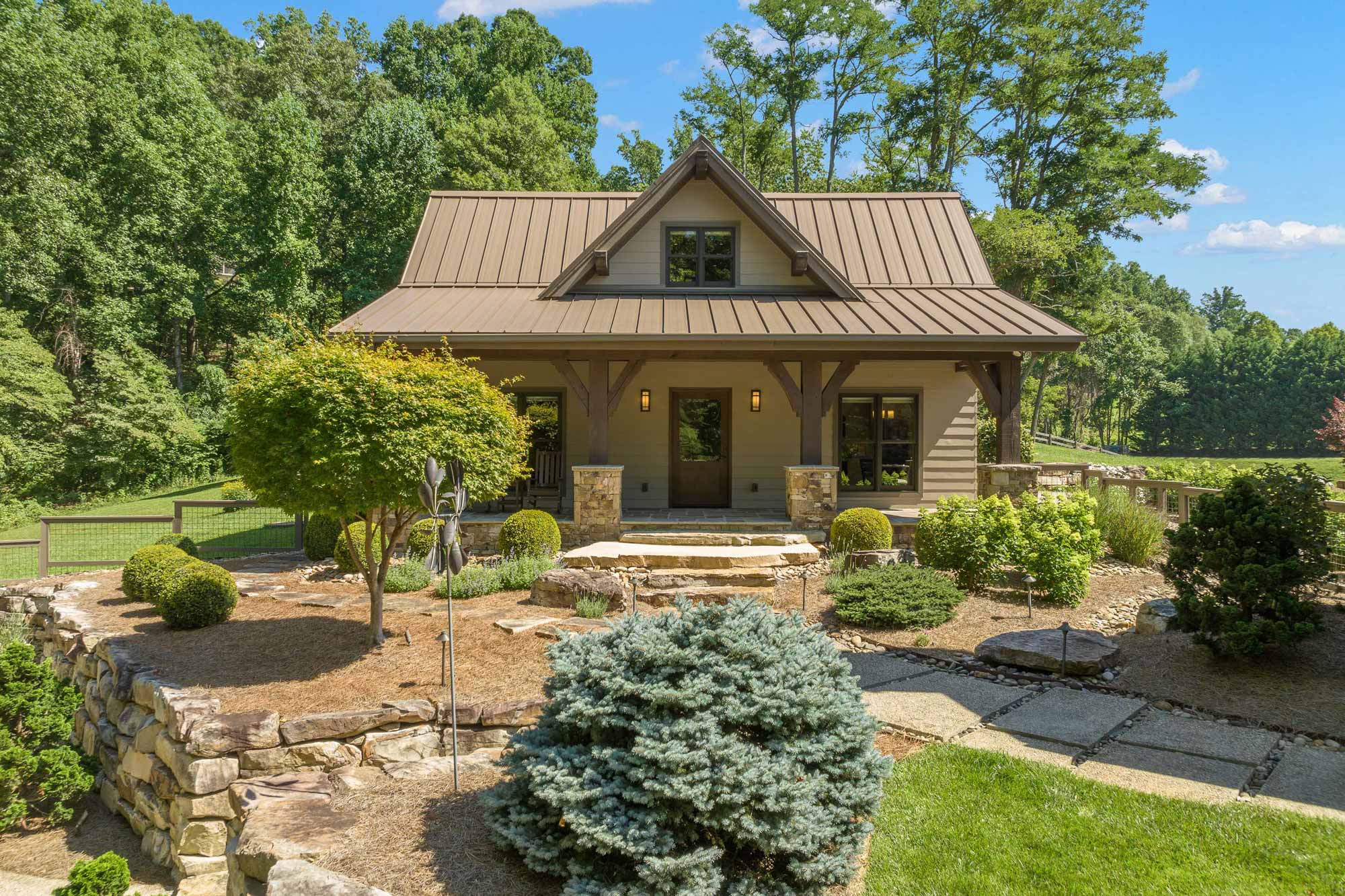 Set amidst an idyllic private setting, this custom home features a four-season room with a stunning stone fireplace and a separate guest house. The cottage feel blends seamlessly with the surrounding forest and hills.