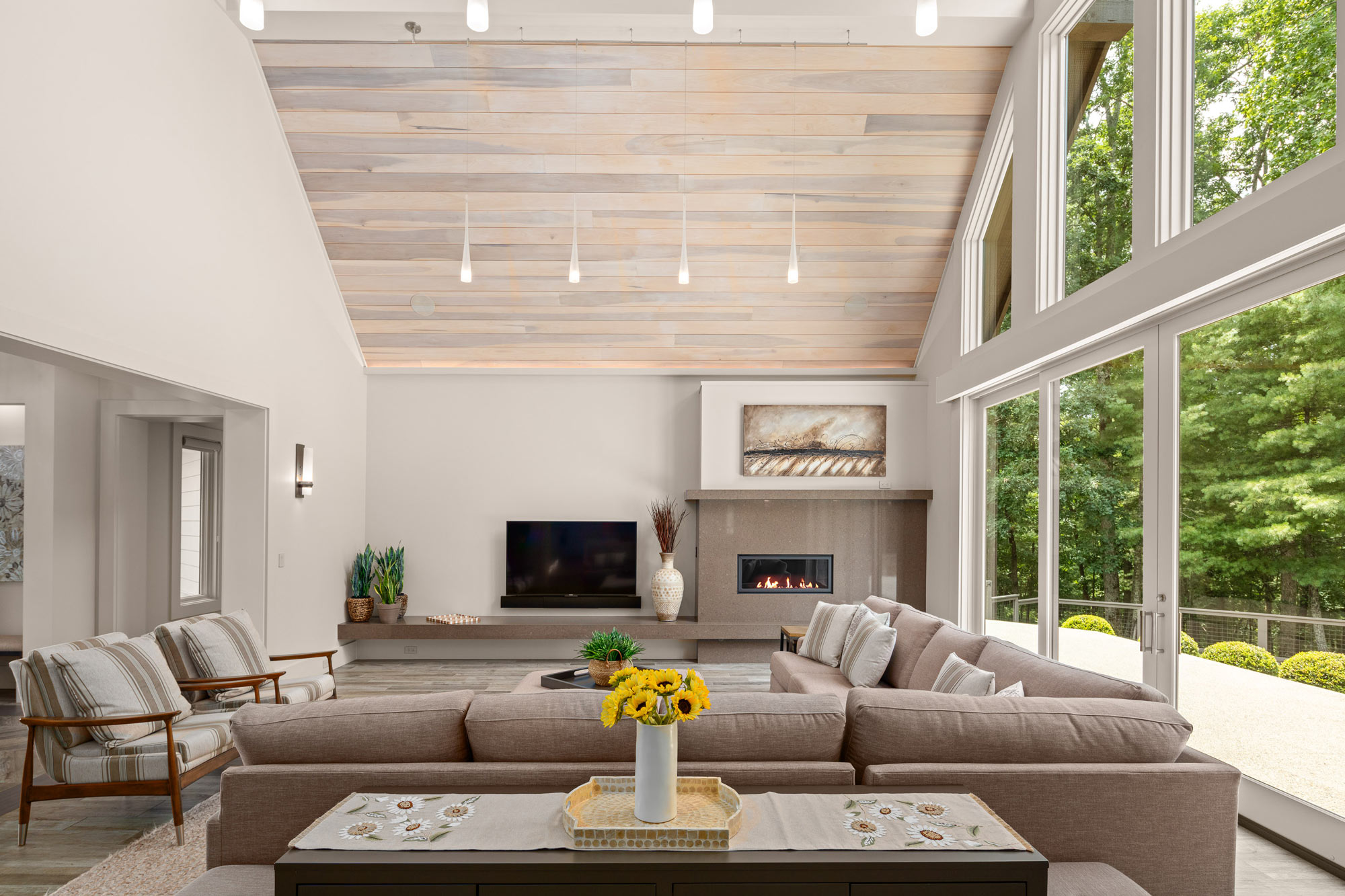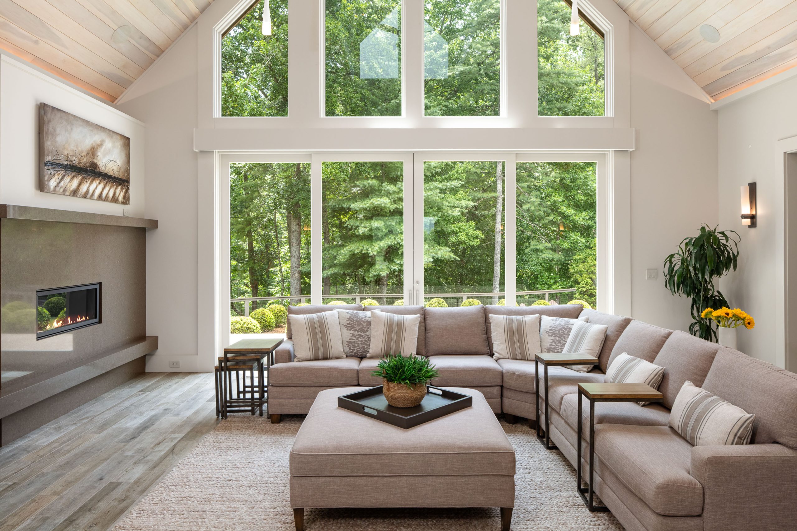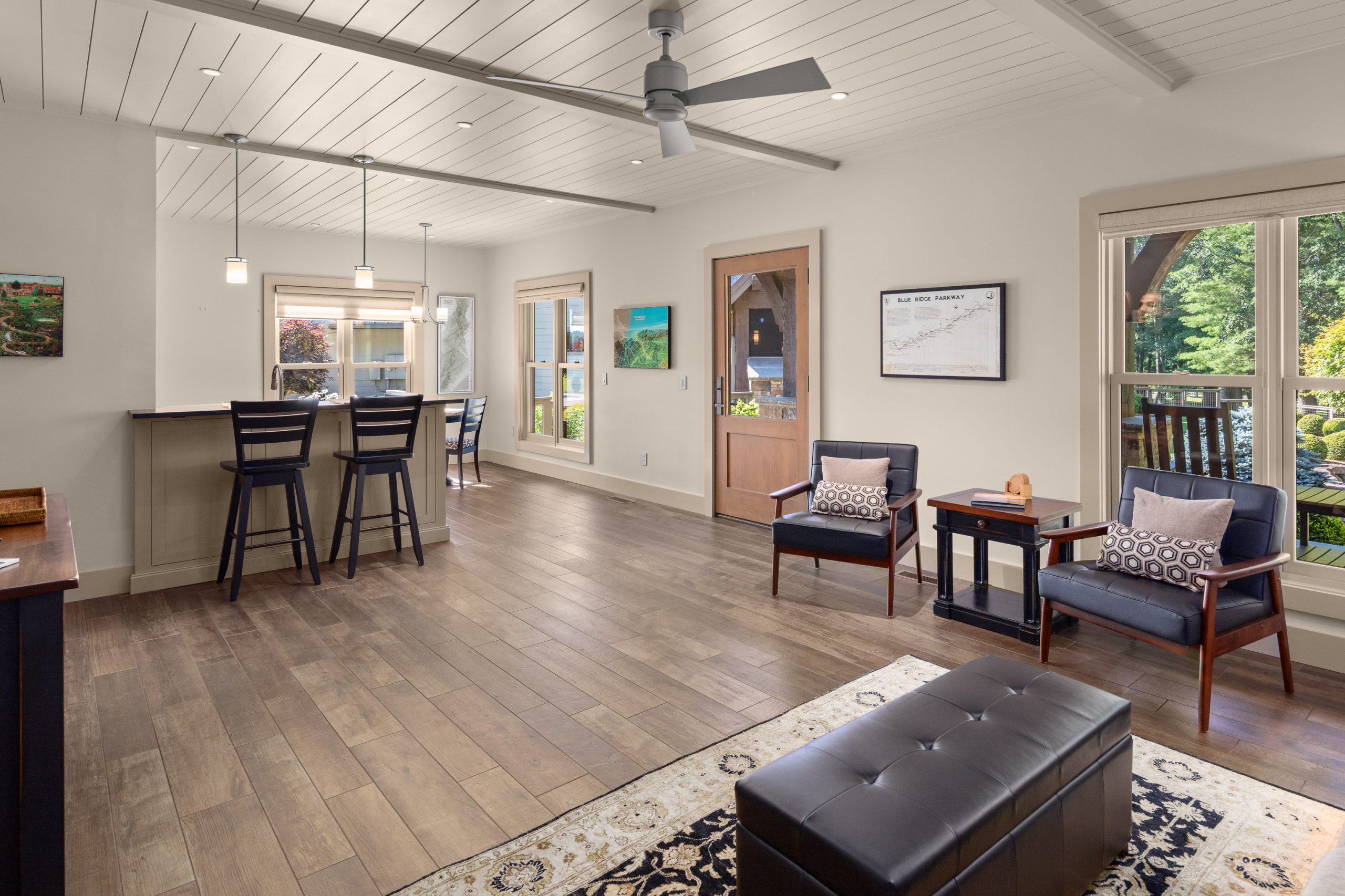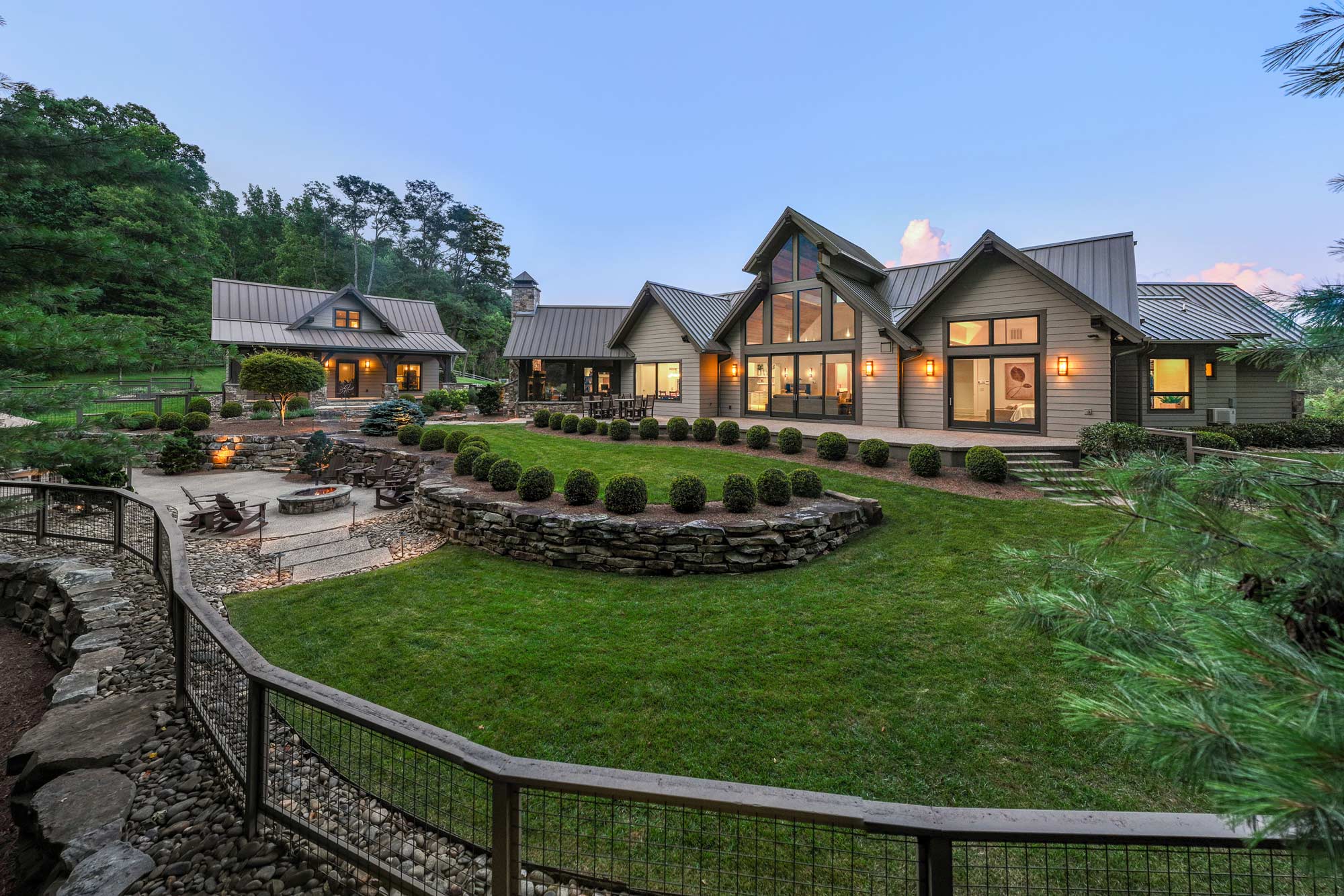 Luxury Home Builders Asheville NC. Set amidst an idyllic private setting, this home features a four-season room with stone fireplace by Osada Construction