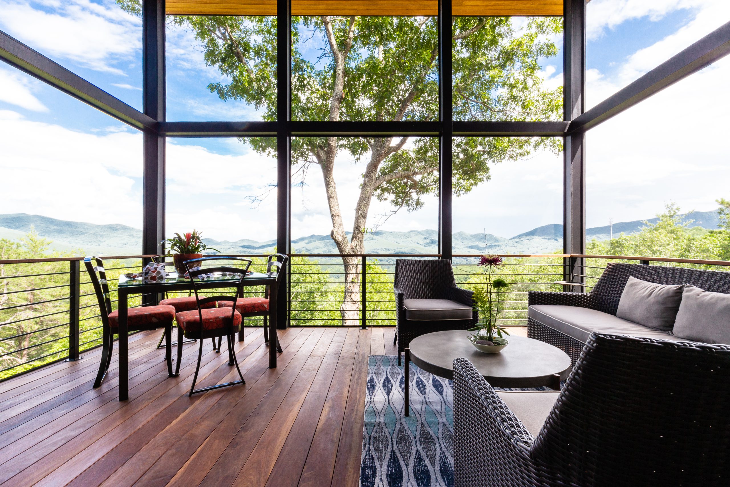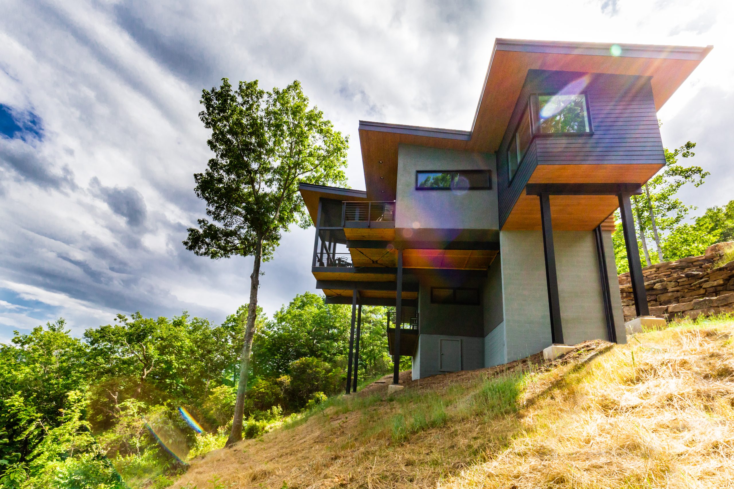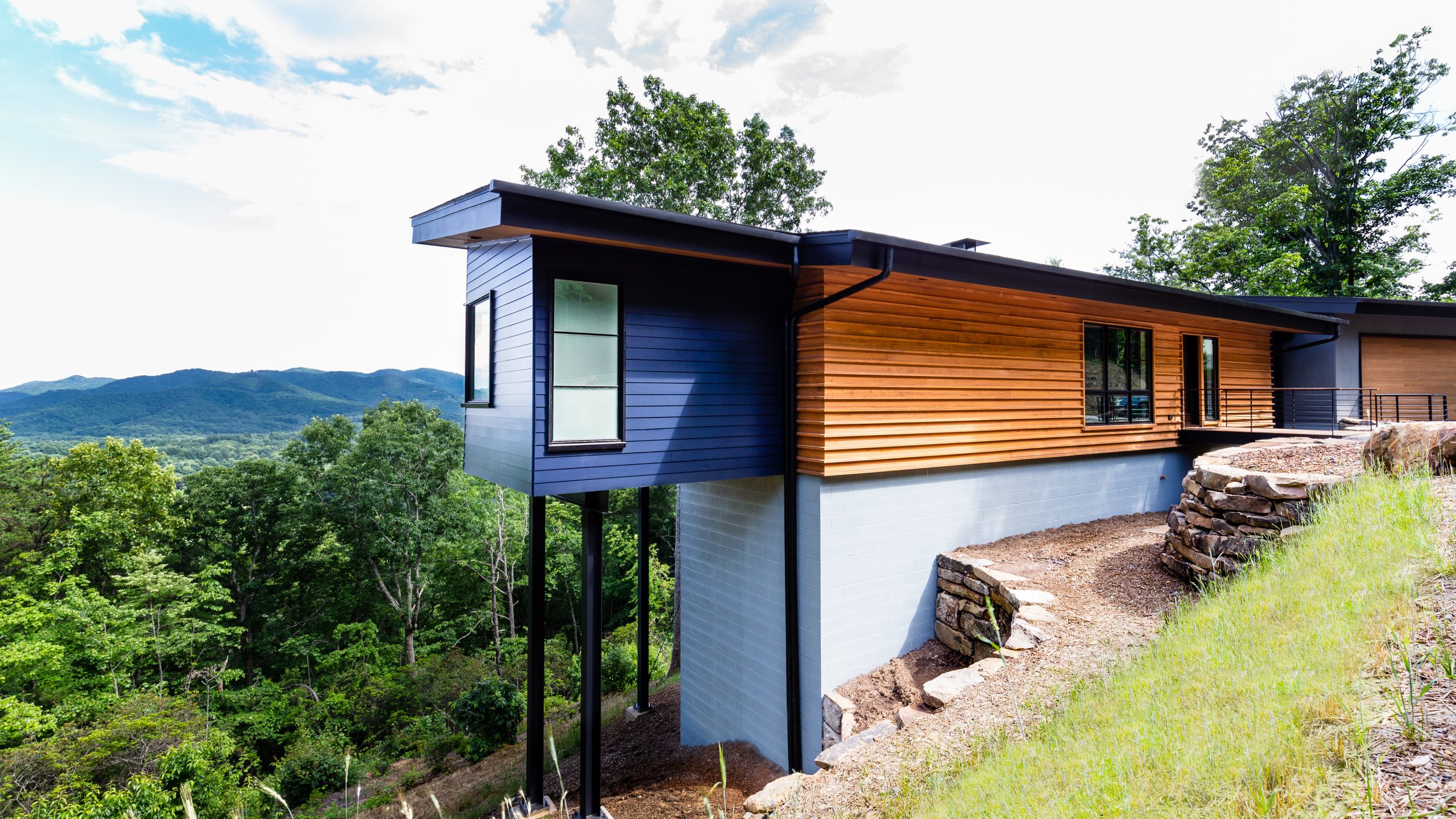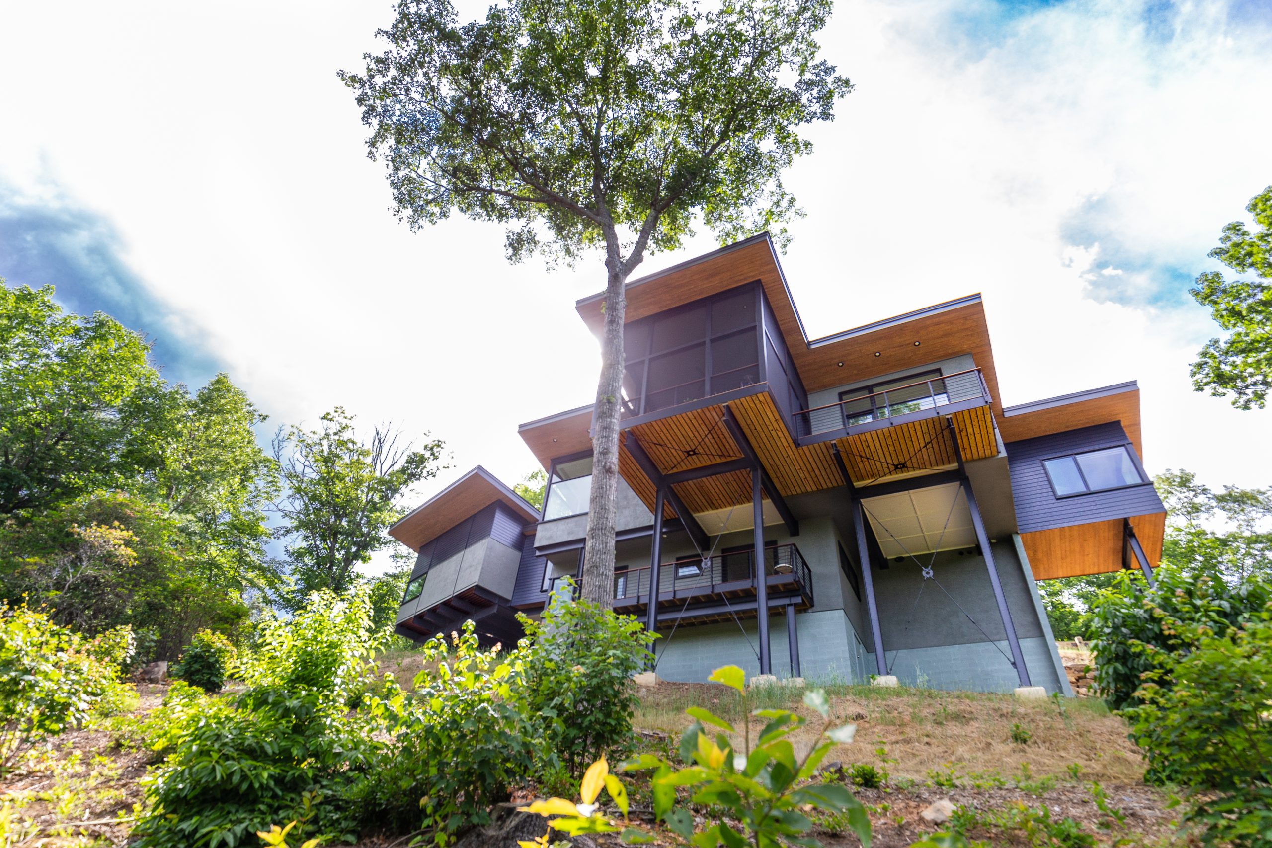 Modern Mountain Custom Builders Asheville. The cantilevered architecture of this home creates the impression of living amidst the trees by Osada Construction.