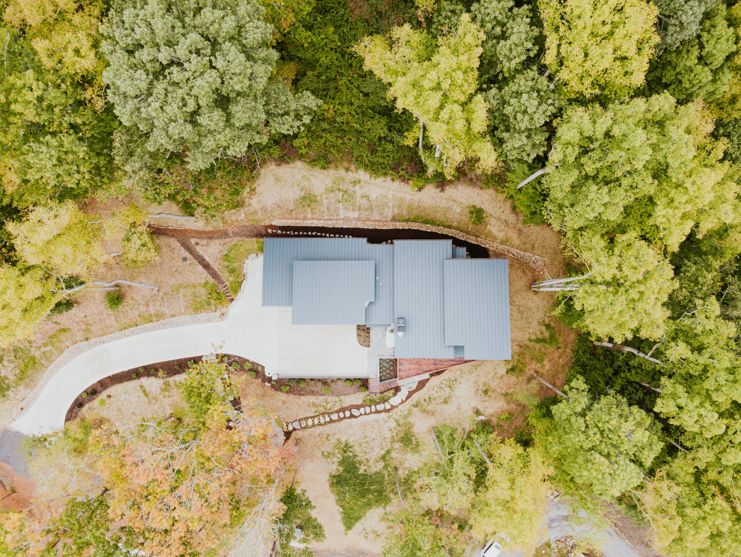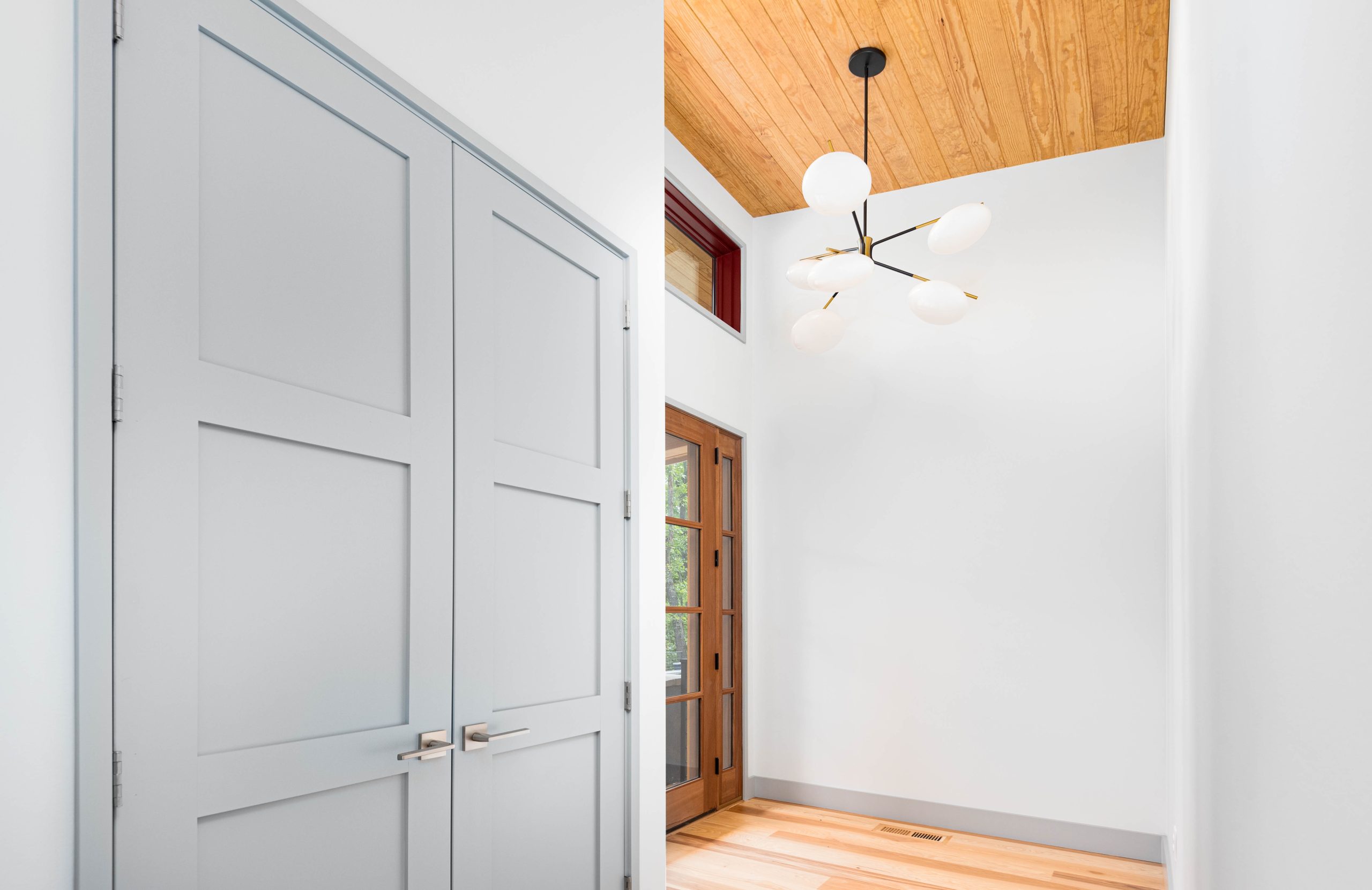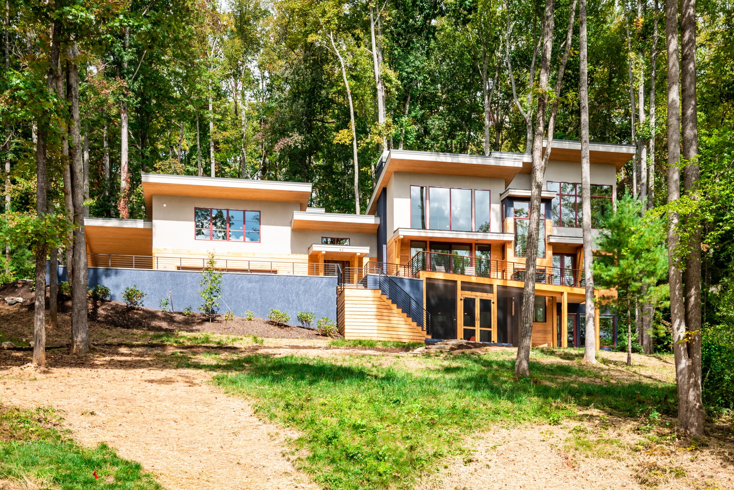 Surrounded by tall oaks, this property offers both privacy and a natural setting, where the beauty of the outdoors enhances the modern contemporary design. With its sleek lines and thoughtfully curated and playful color palette, this home strikes the perfect balance between contemporary elegance and the peacefulness of its wooded surroundings.