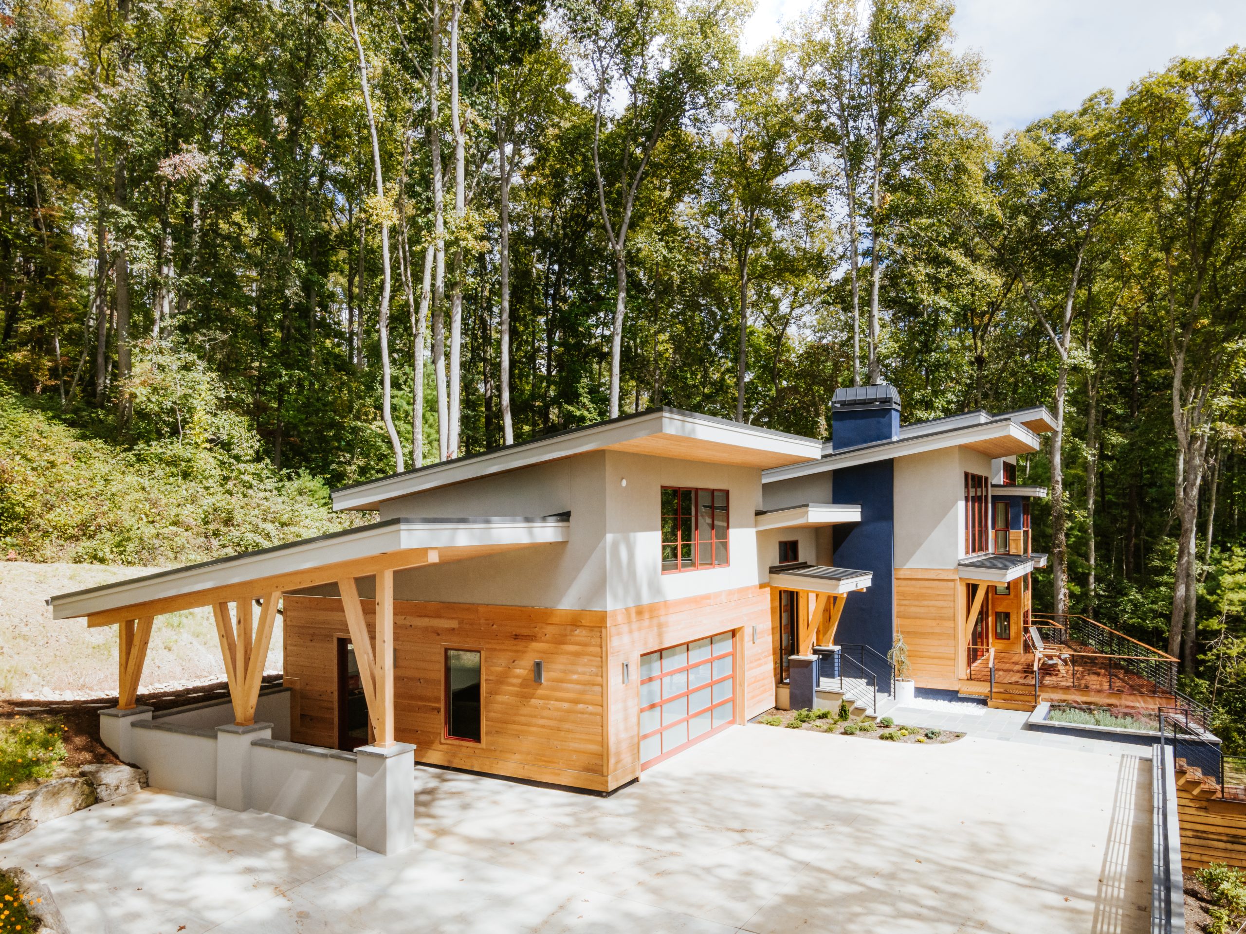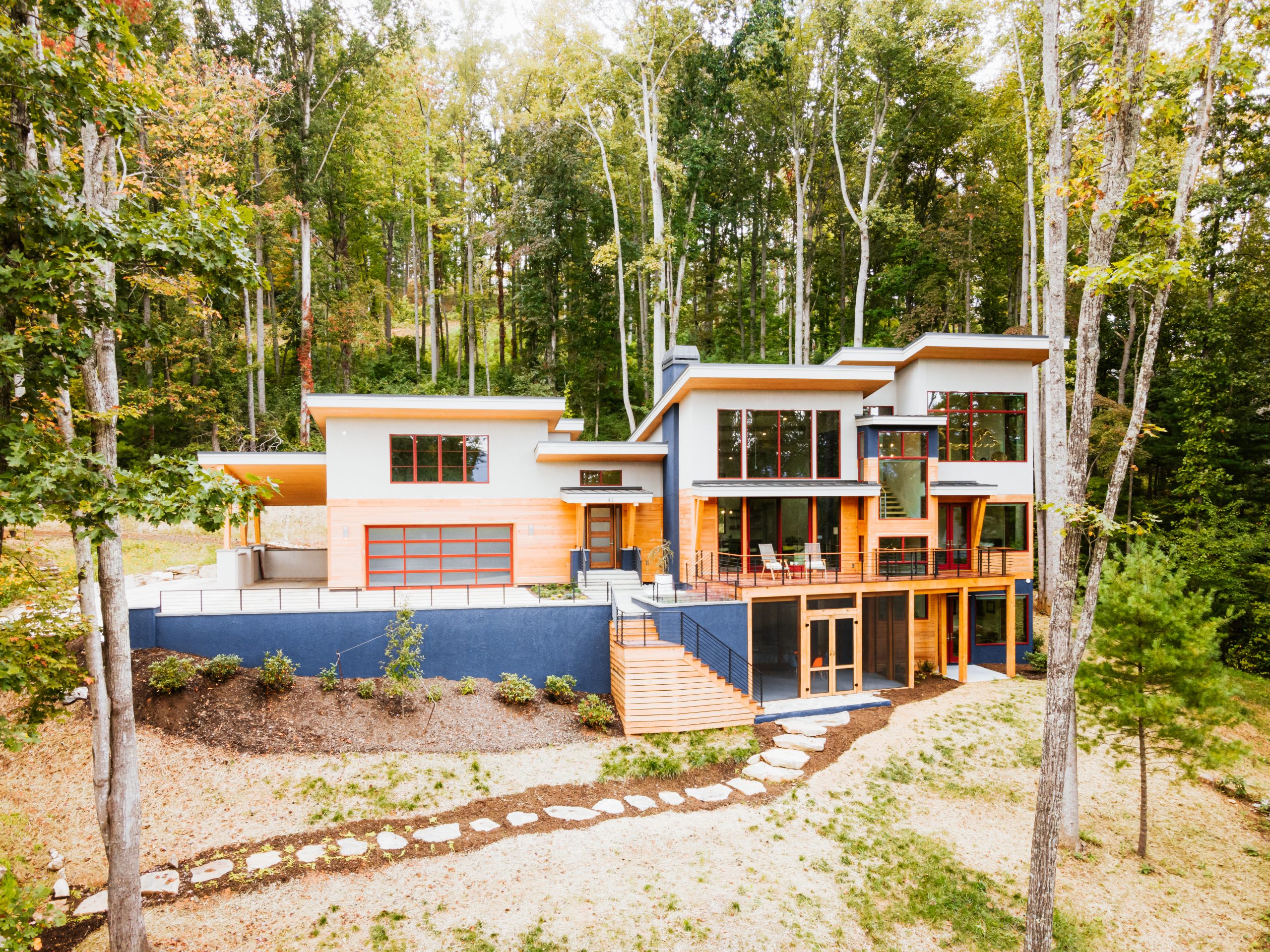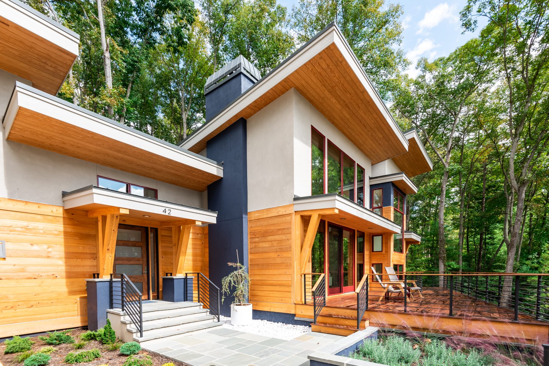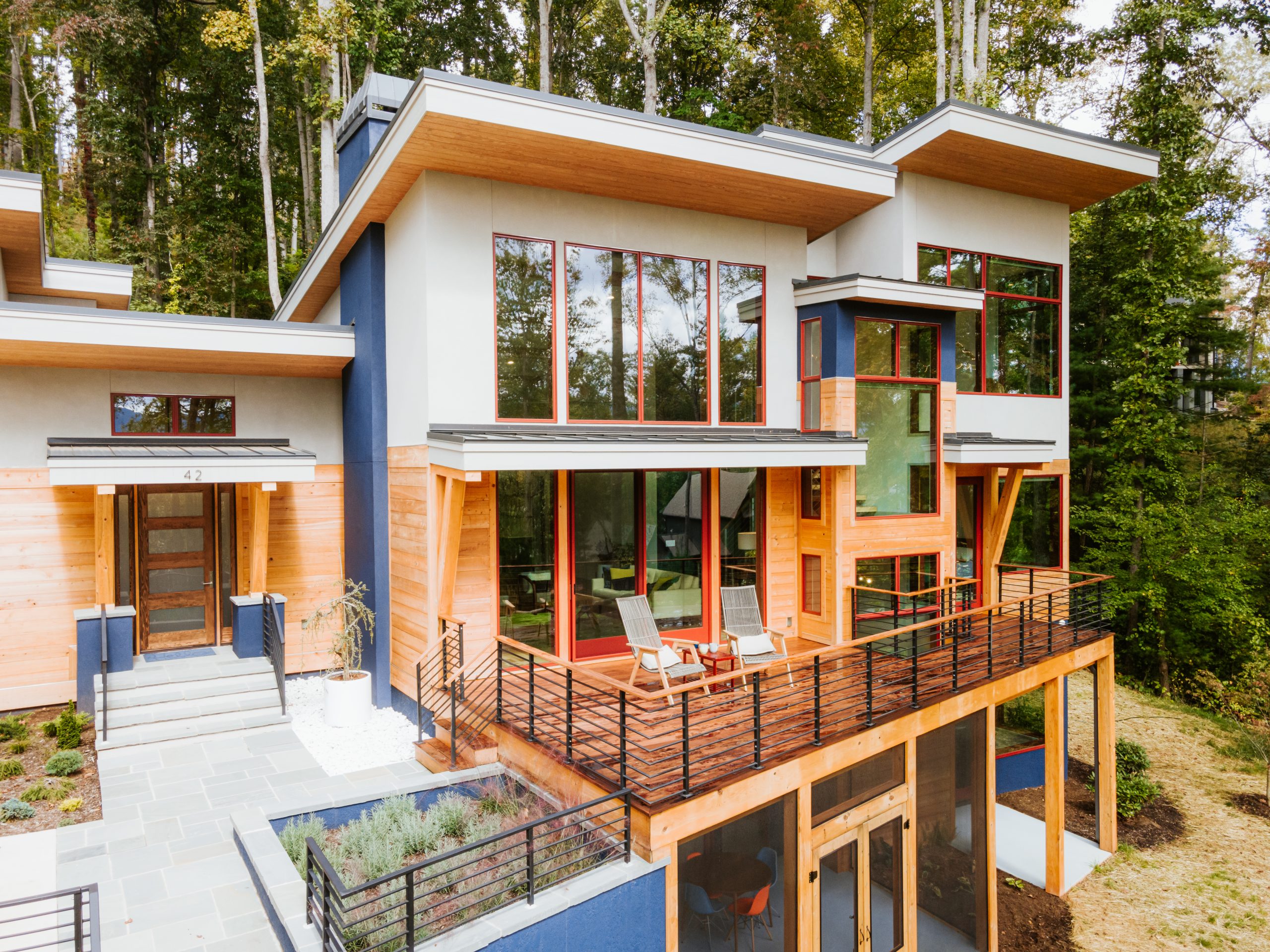 Surrounded by tall oaks, this property offers both privacy and a natural setting, where the beauty of the outdoors enhances the modern contemporary design. With its sleek lines and thoughtfully curated and playful color palette, this home strikes the perfect balance between contemporary elegance and the peacefulness of its wooded surroundings.