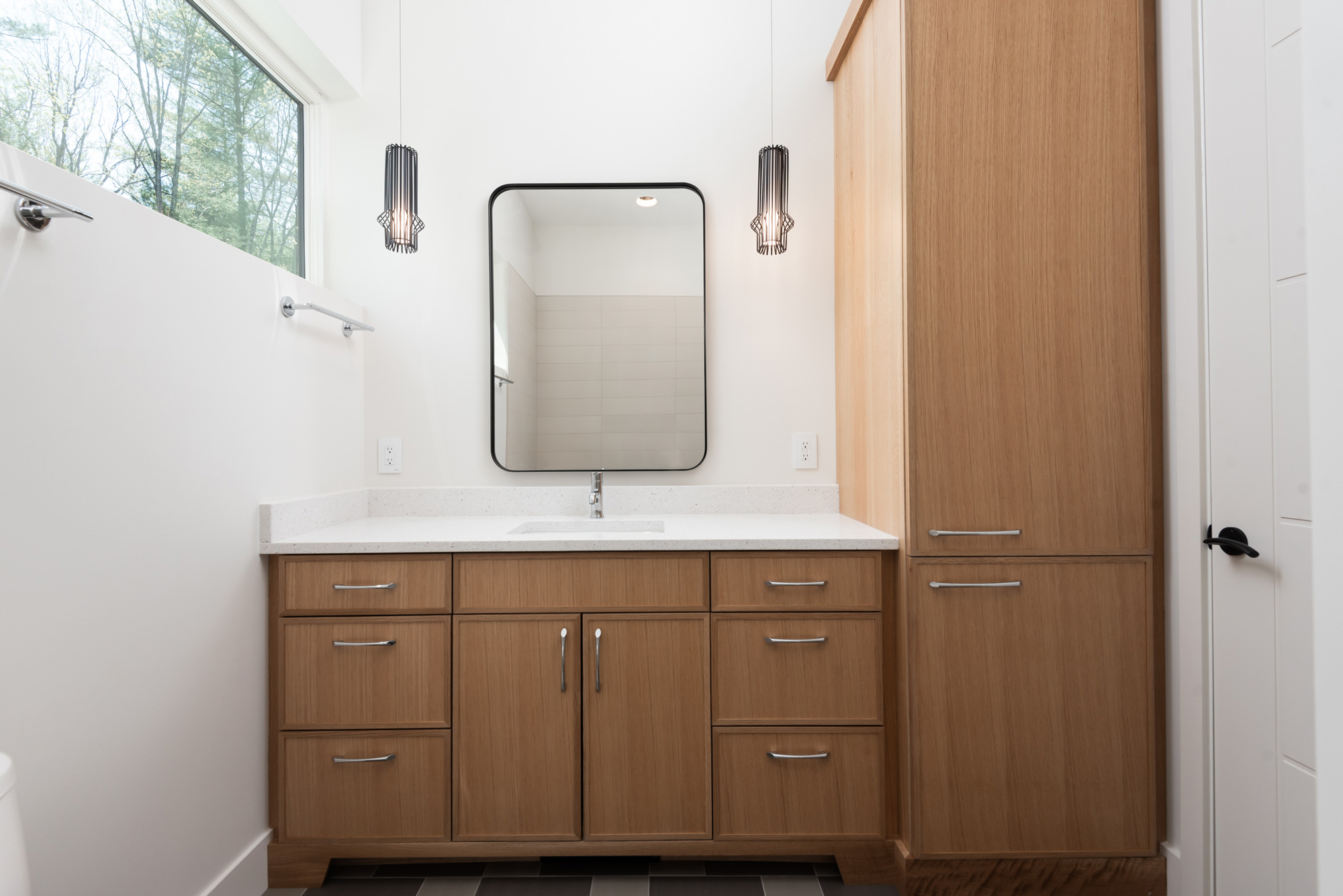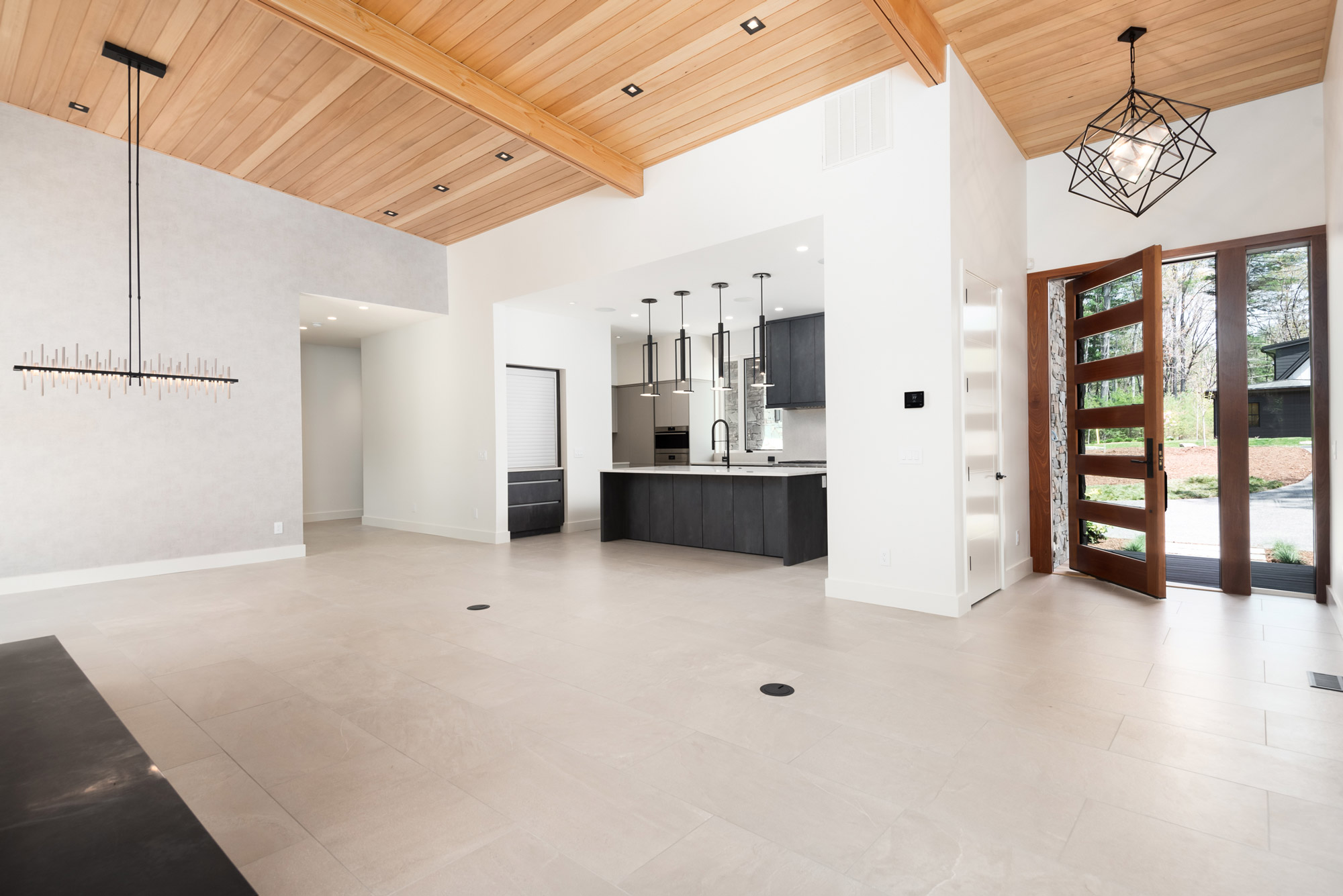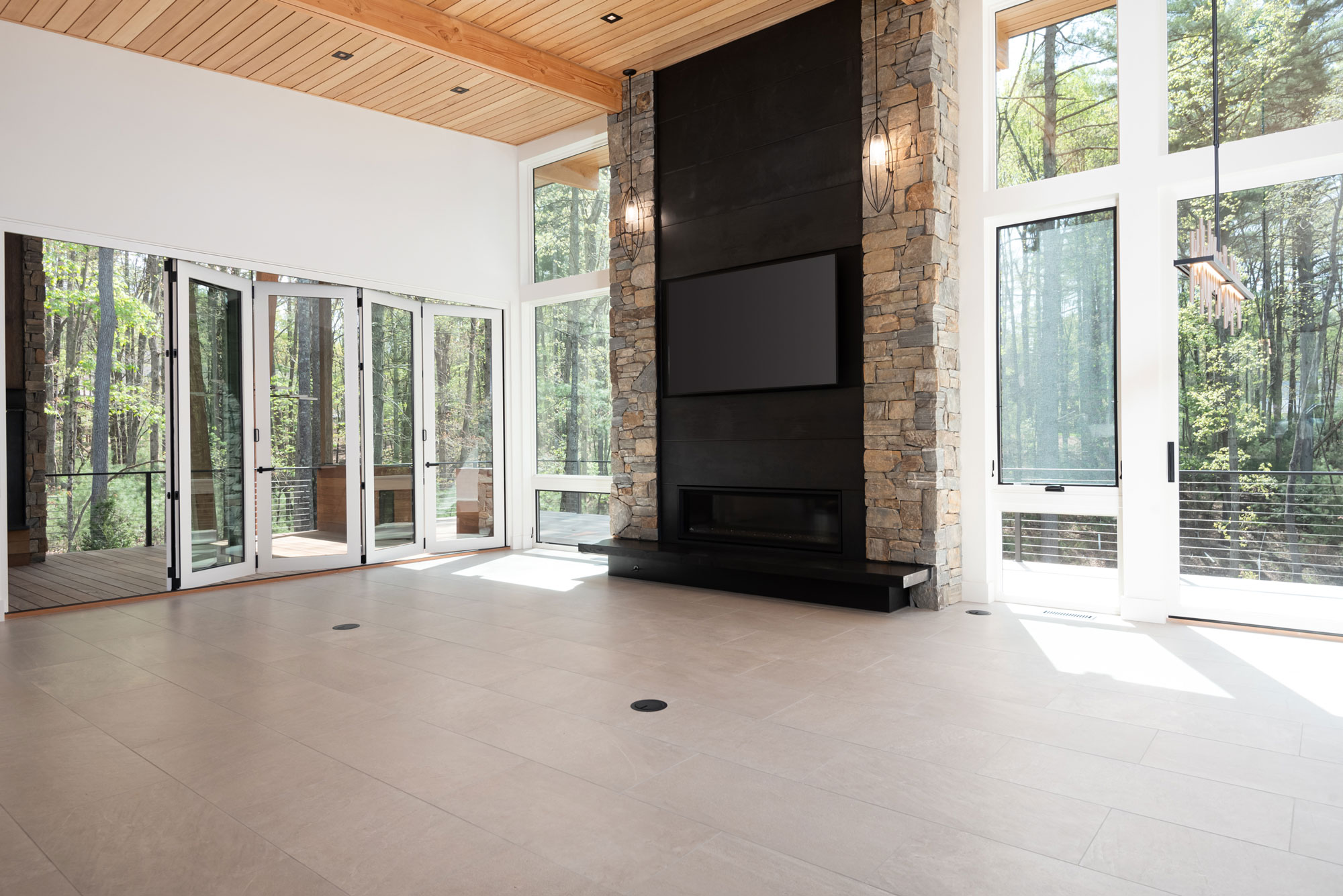 Modern home designed to combine indoor and outdoor living. The large screened-in porch divided by a large accordion-style slider can be opened year-round for fresh air and comfort.