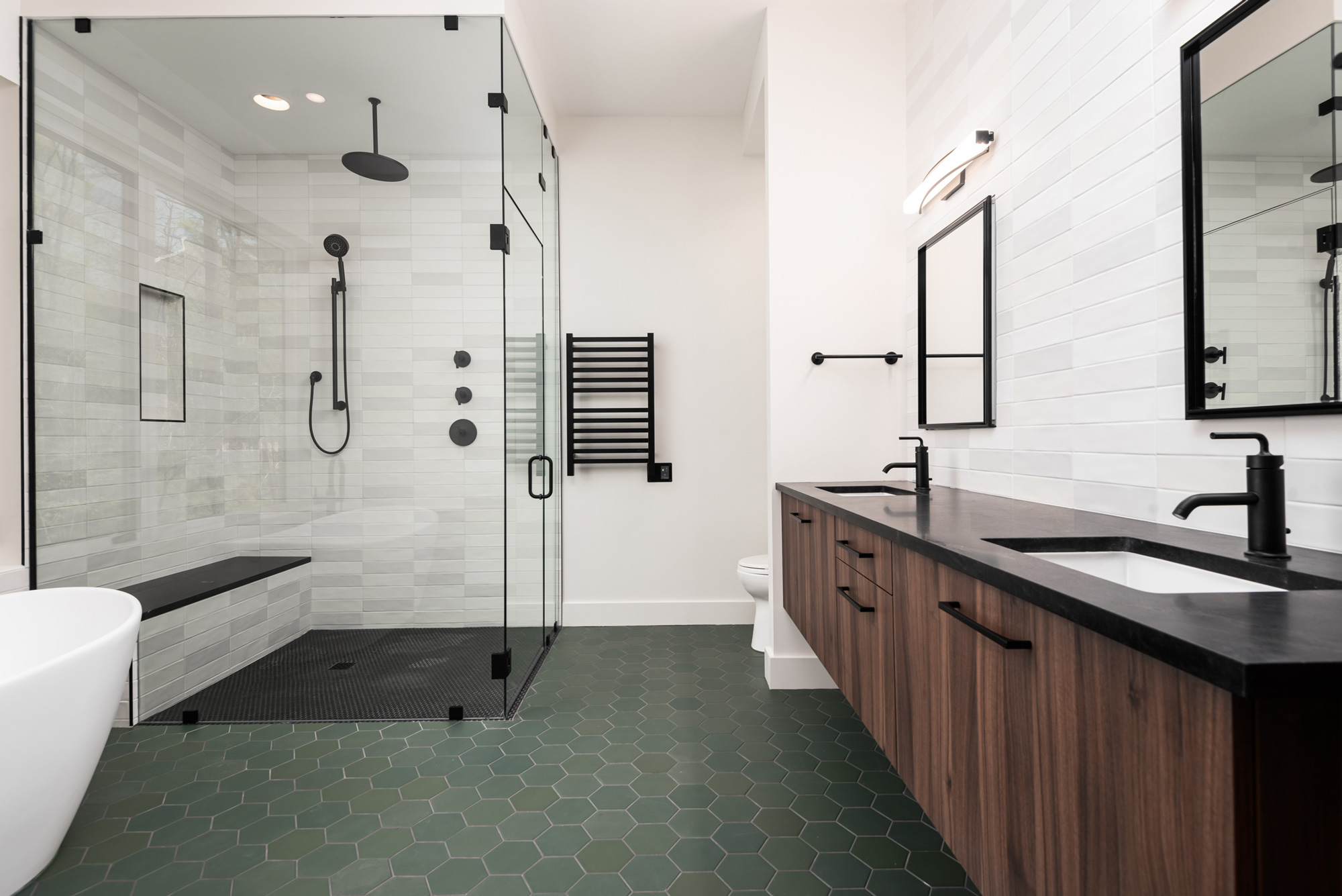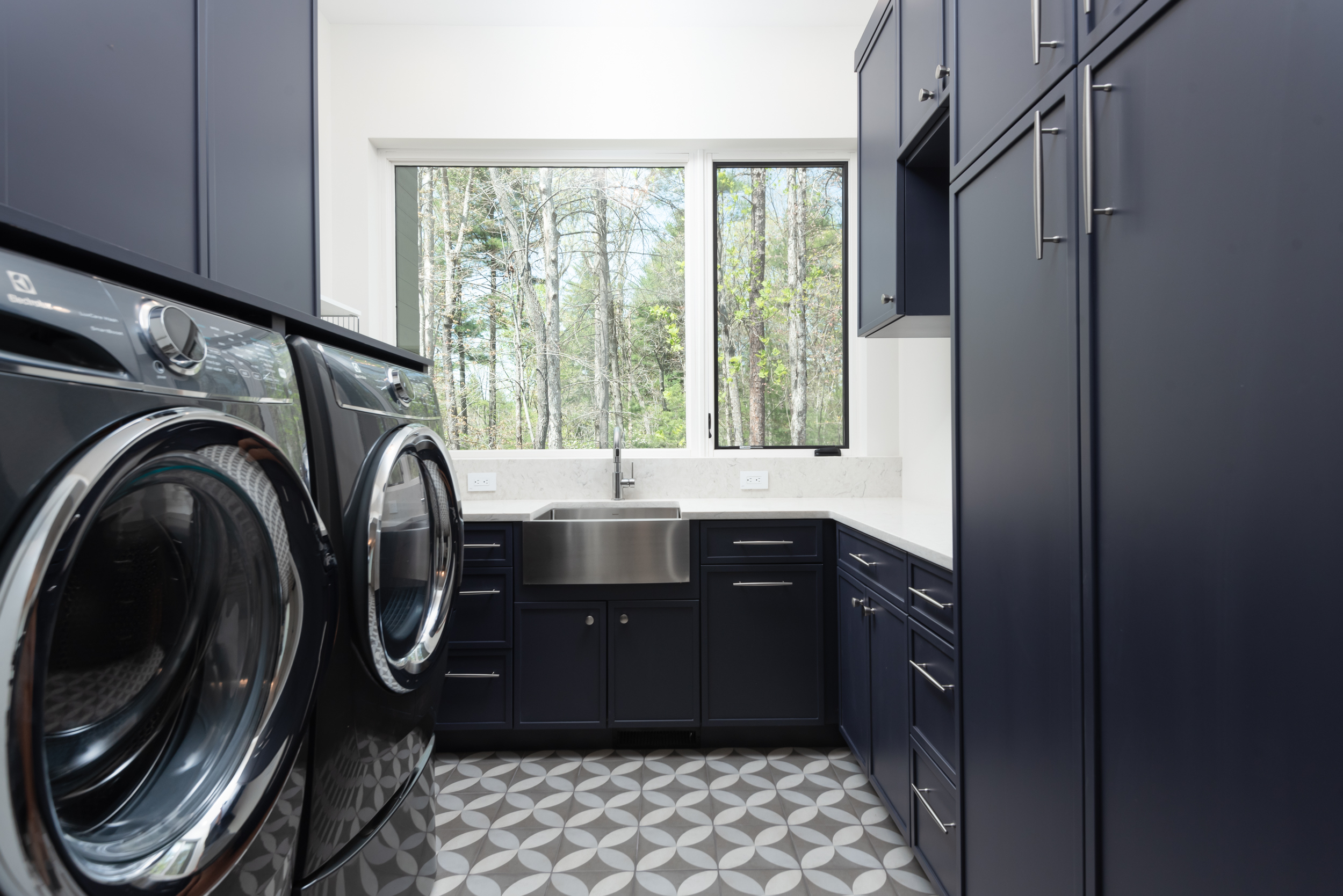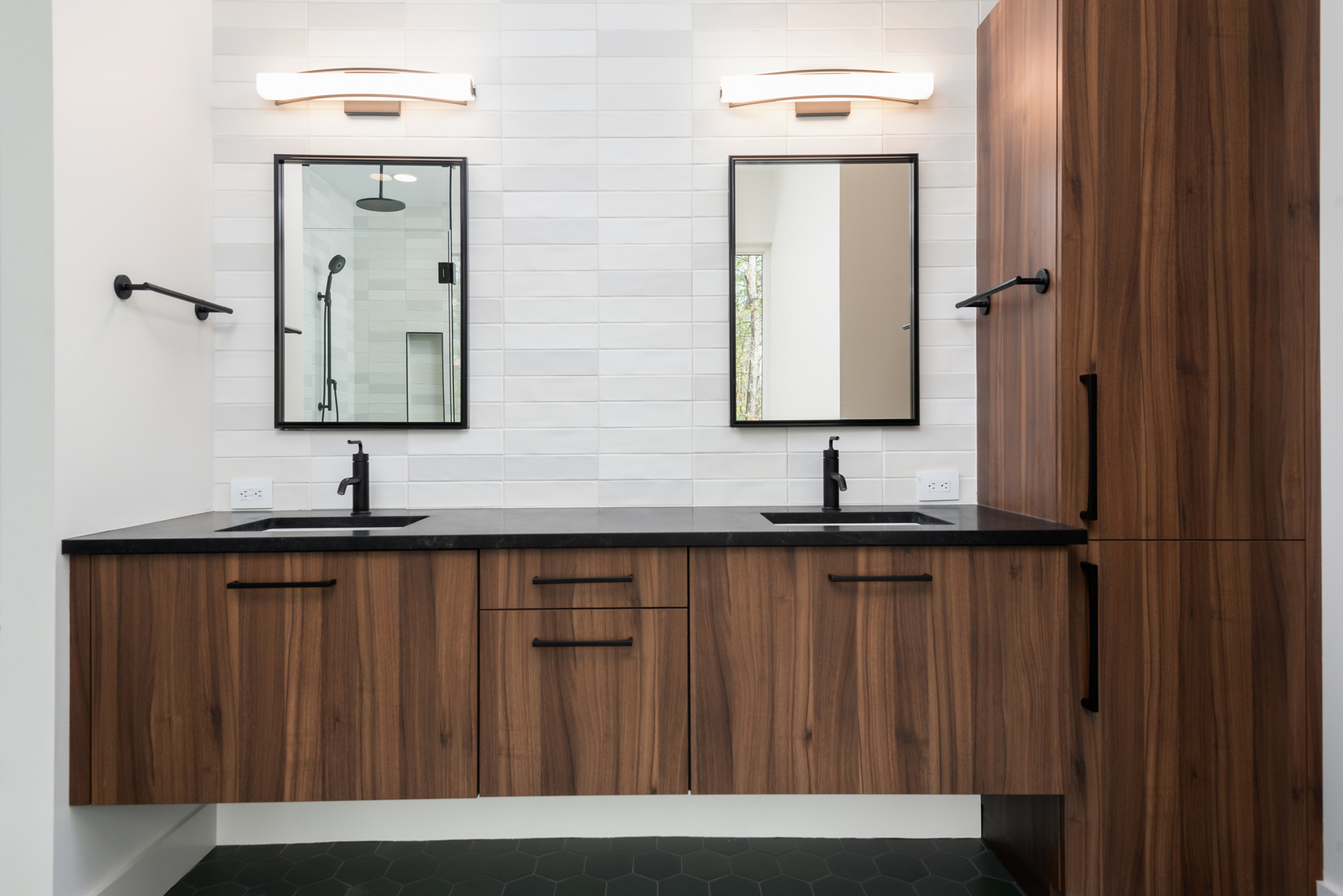 Modern home designed to combine indoor and outdoor living. The large screened-in porch divided by a large accordion-style slider can be opened year-round for fresh air and comfort.