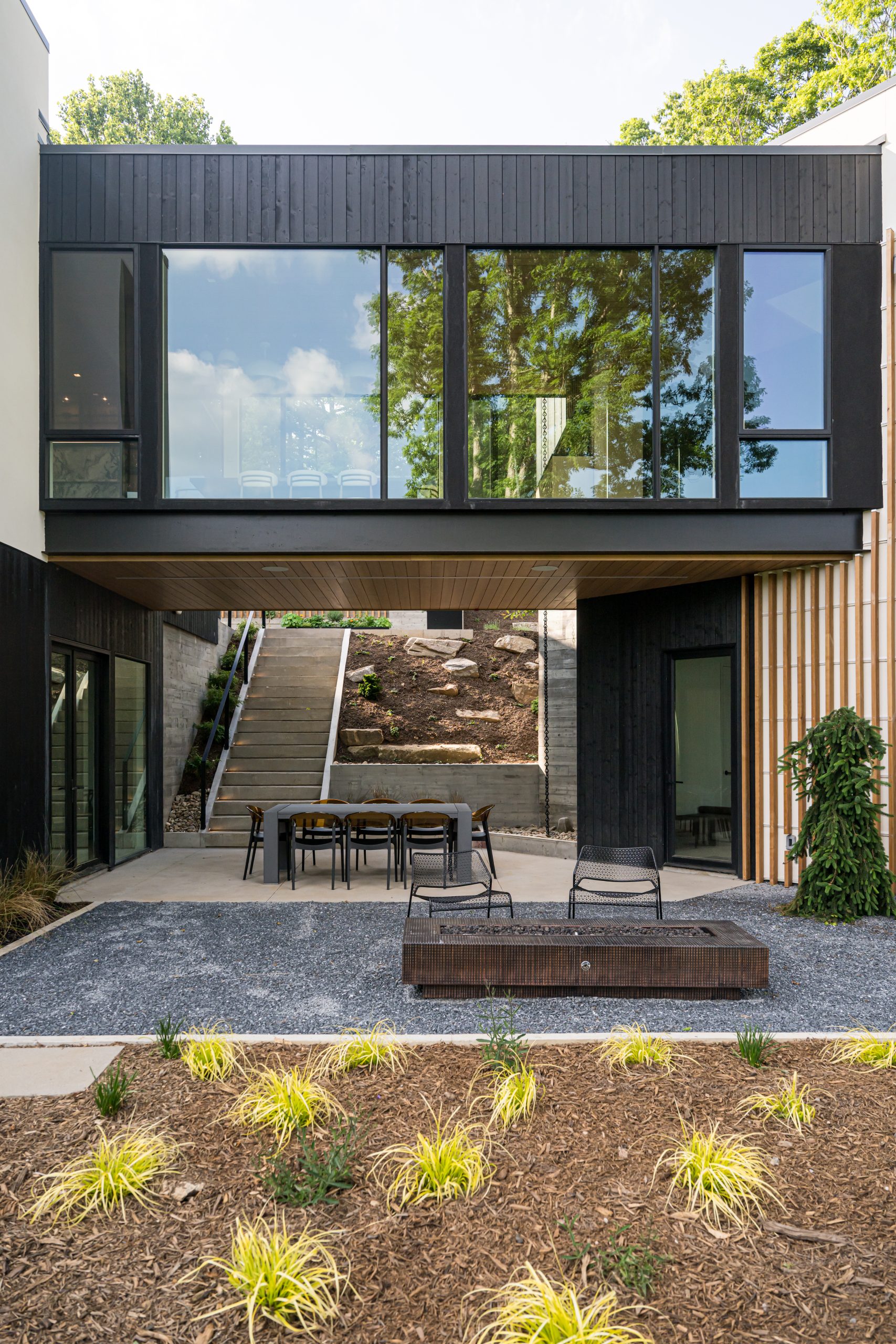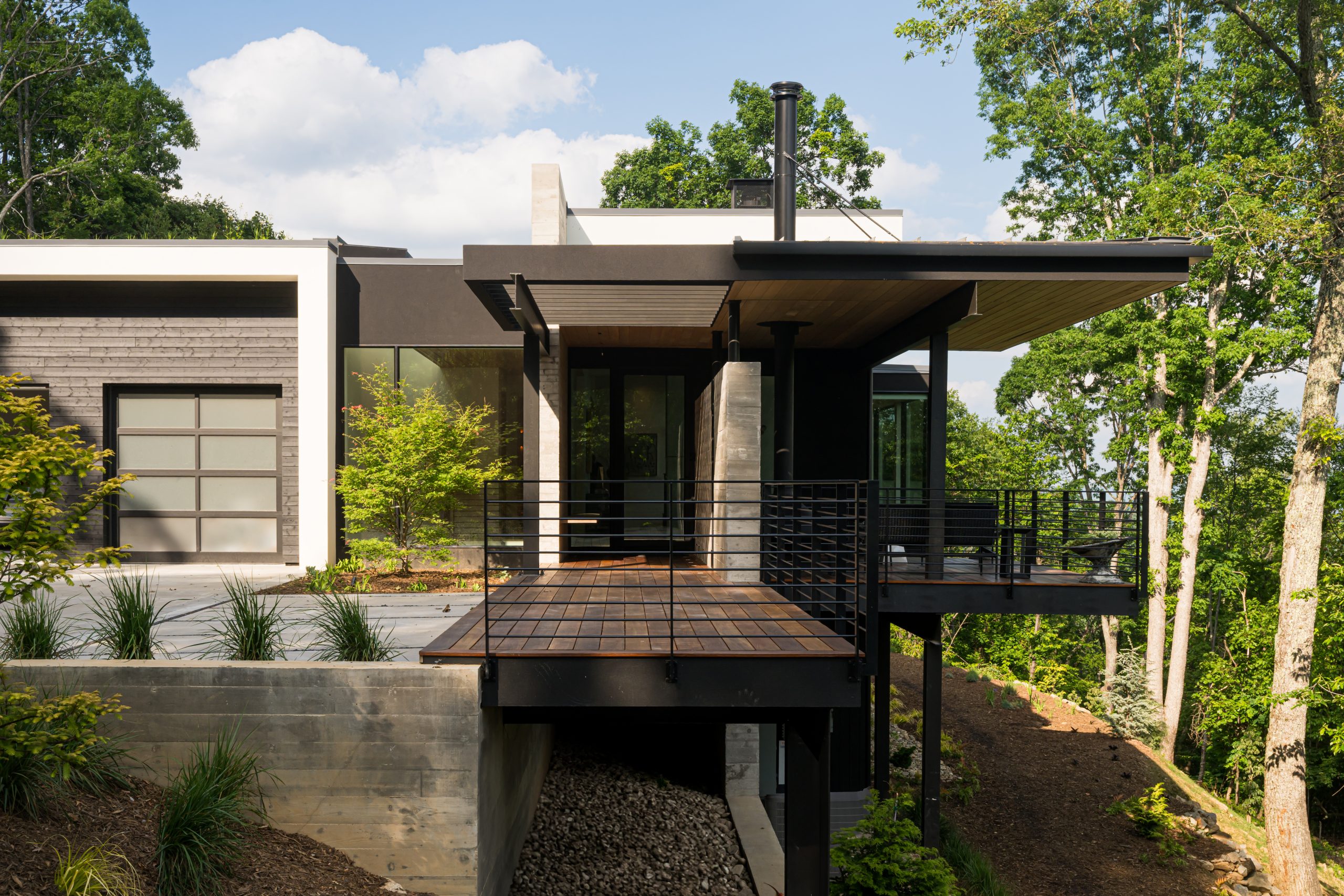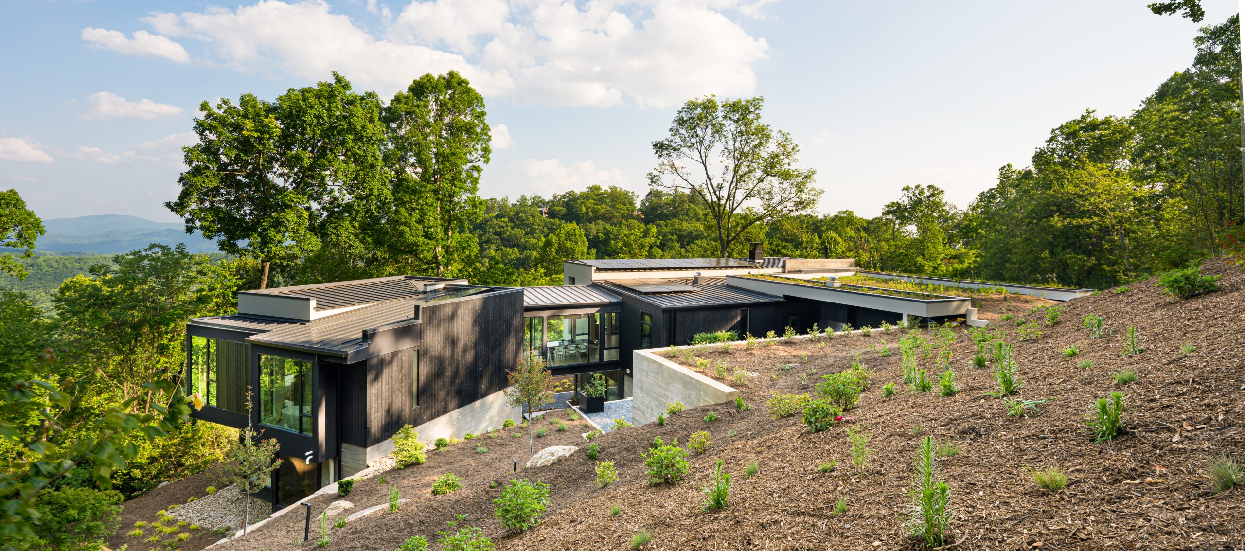 Tucked into the mountainside, this home feels like it was built to rise organically from the terrain. Designed to flow with the landscape, not fight it, the structure is both grounded and elevated — with cantilevered sections that reach out into the view and a living roof that blends seamlessly into its surroundings. A bridge connects the main living space to the private primary wing, offering a quiet moment to take in the scenery. This is a house that lets nature in, and invites you to live with it, not just beside it.