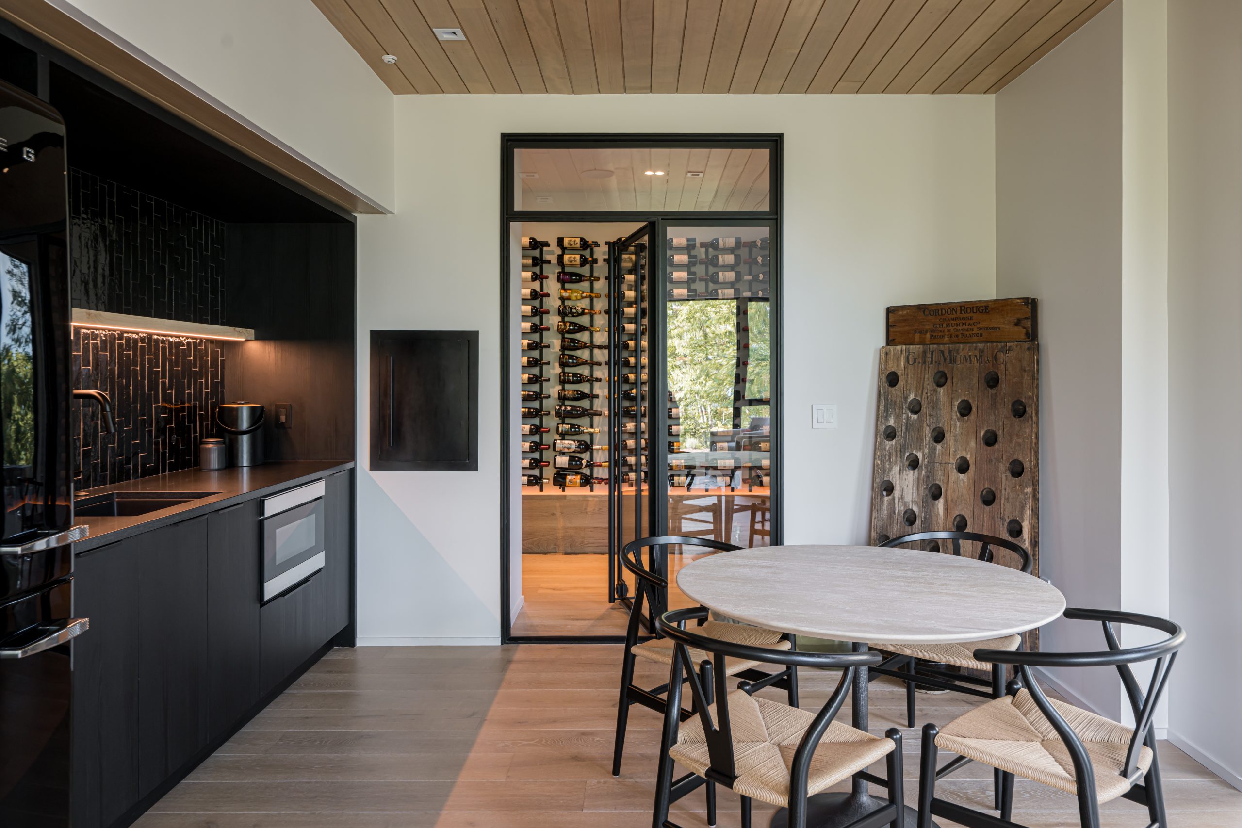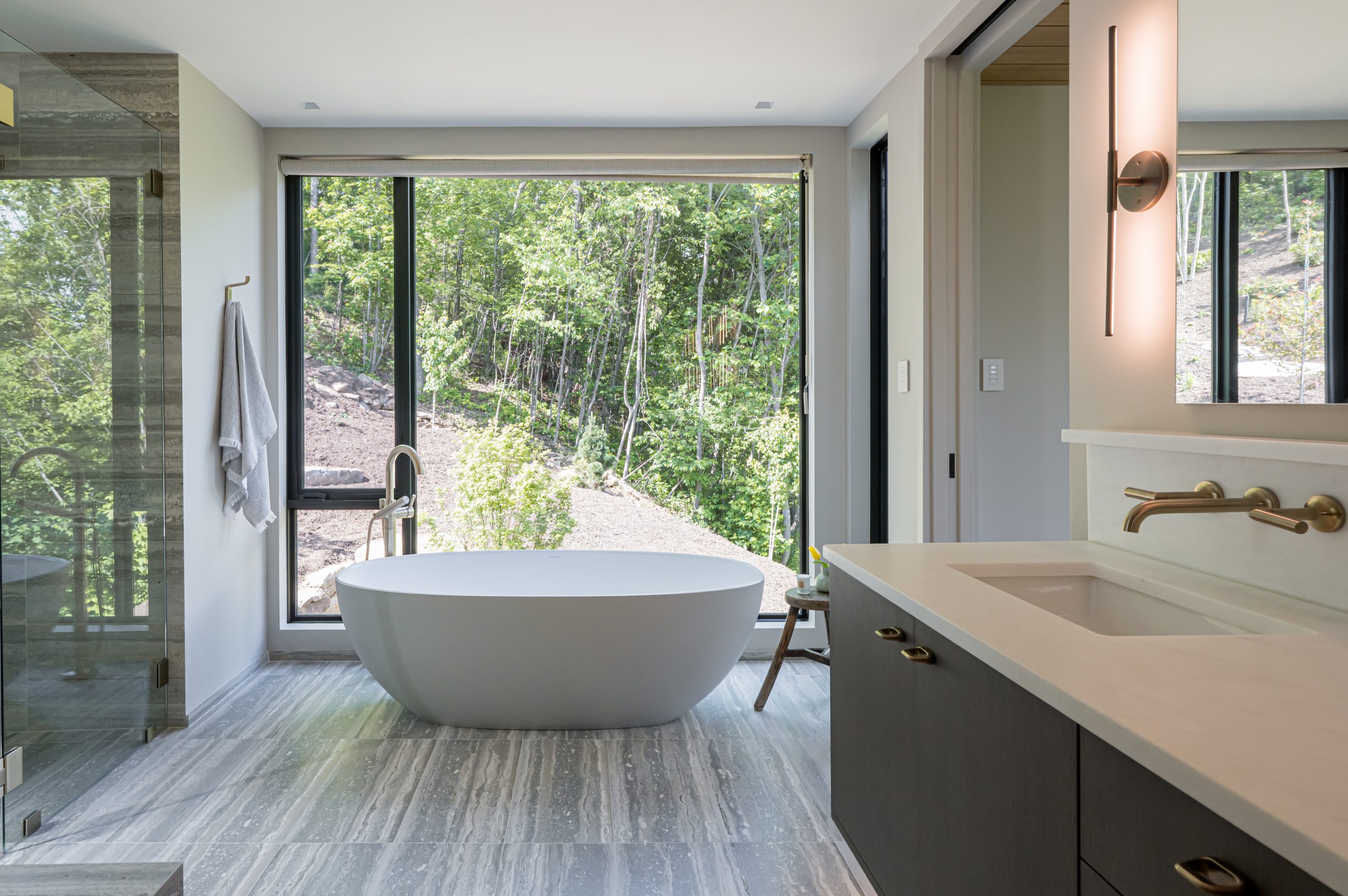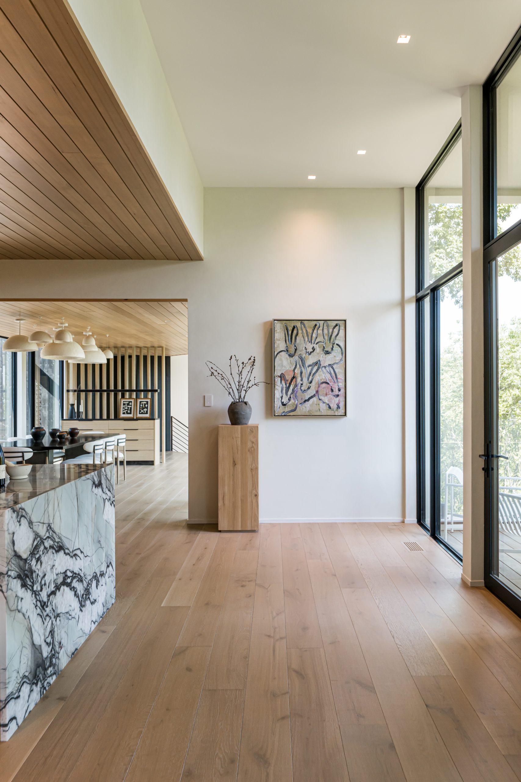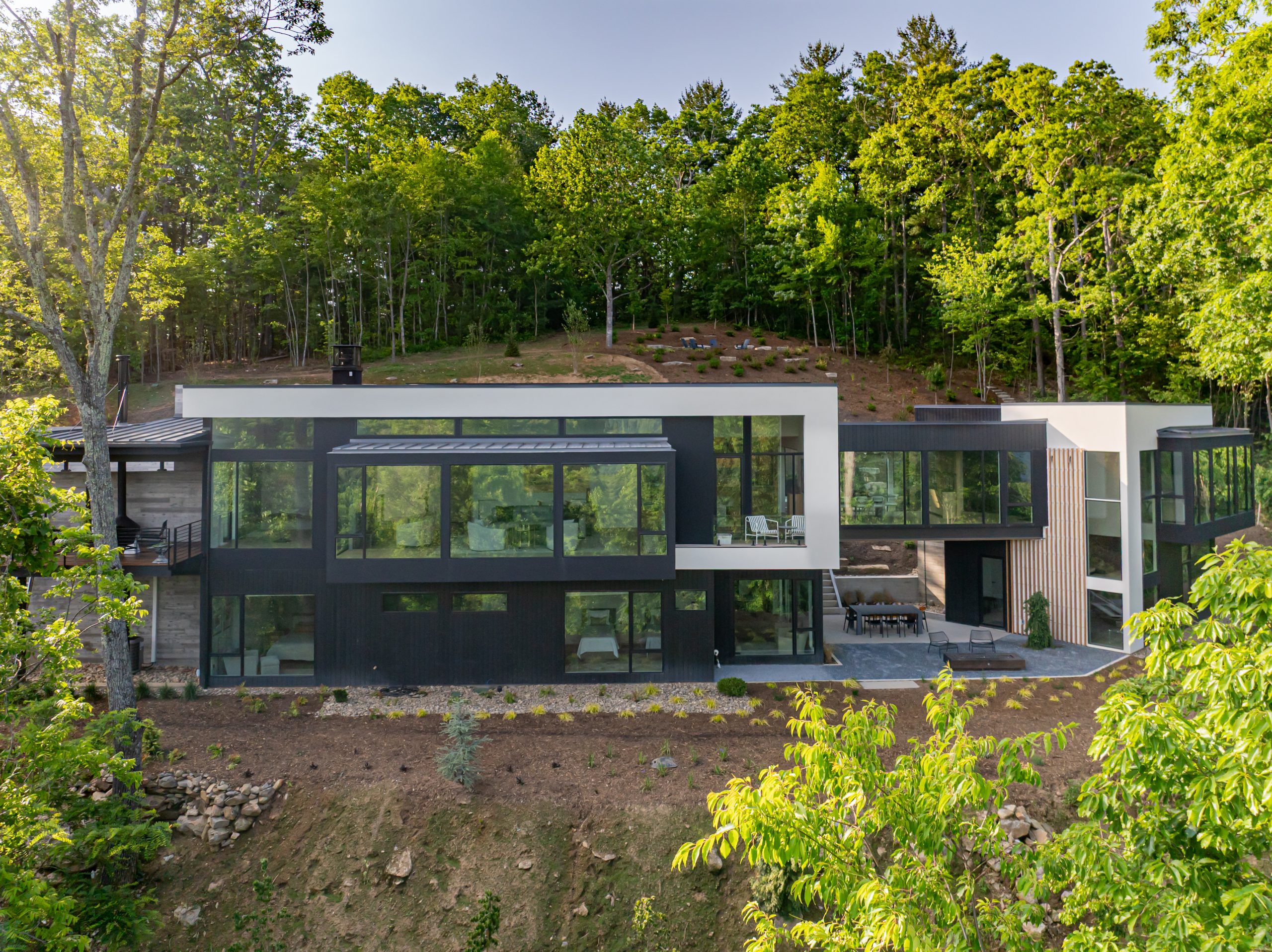 Tucked into the mountainside, this home feels like it was built to rise organically from the terrain. Designed to flow with the landscape, not fight it, the structure is both grounded and elevated — with cantilevered sections that reach out into the view and a living roof that blends seamlessly into its surroundings. A bridge connects the main living space to the private primary wing, offering a quiet moment to take in the scenery. This is a house that lets nature in, and invites you to live with it, not just beside it.